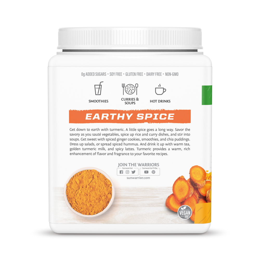 Get down to earth with turmeric. A little spice goes a long way. Savor the savory as you sauté vegetables, spice up rice and curry dishes, and stir into soups. Get sweet with spiced ginger cookies, smoothies, and chia puddings. Dress up salads, or spread spiced hummus. And drink it up with warm tea, golden turmeric milk, and spicy lattes. Turmeric provides a warm, rich enhancement of flavor and fragrance to your favorite recipes.
