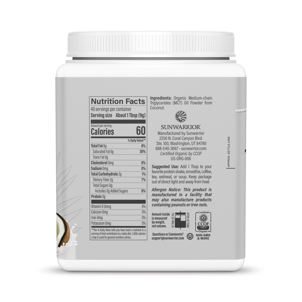 Sunwarrior, Sport, Active MCT Oil Powder, Unflavored, 360 g
