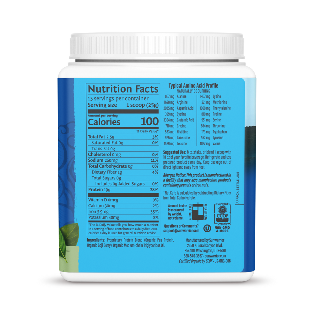 Sunwarrior, Warrior Blend, Protein, Unflavored, 375 g