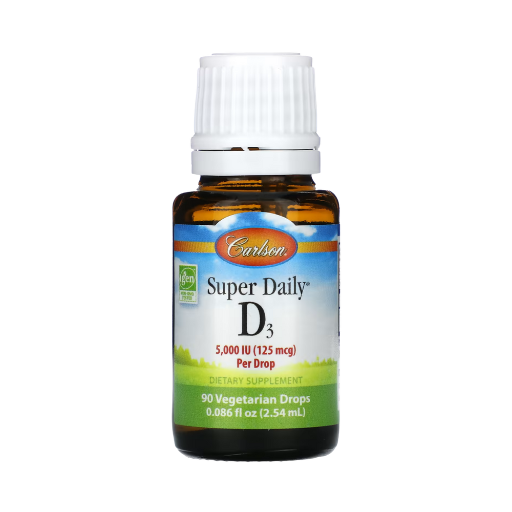 Vitamin D3 plays an important role in overall health, but not everyone gets enough from the sun. Carlson Super Daily® D3 provides vitamin D3 in a safe, quick, and convenient way. A single drop of Super Daily® D3 supplies 5,000 IU (125 mcg) of concentrated liquid vitamin D3.