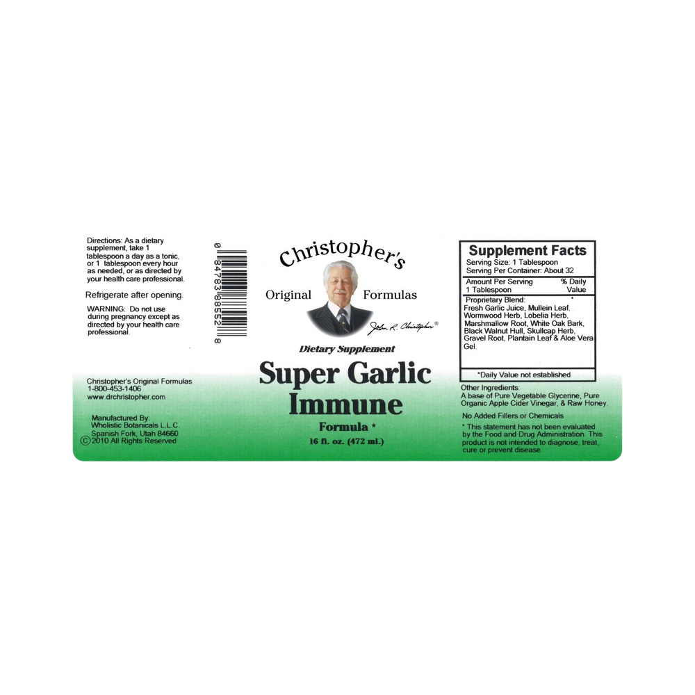 Dr. Christopher's Super Garlic Immune Syrup is a powerful antioxidant that supports the circulatory system, promotes circulation & is an all natural immune booster.