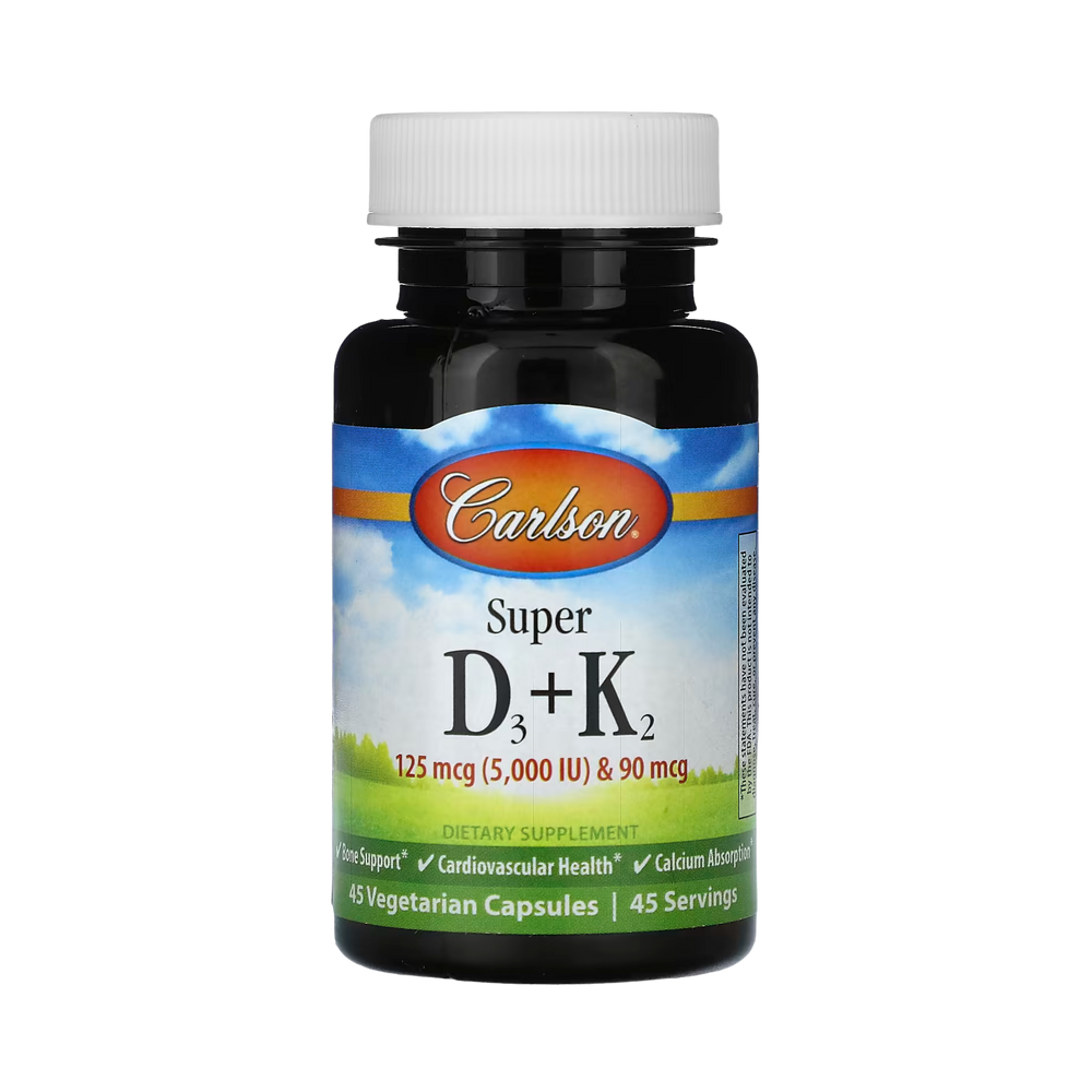 Super D3 + K2 provides a high-potency blend of vitamins D3 and K2 as MK-7, which work synergistically to support cardiovascular and bone health. Vitamin D3 helps regulate calcium absorption, and vitamin K2, derived from chickpeas, helps direct calcium to our bones.
