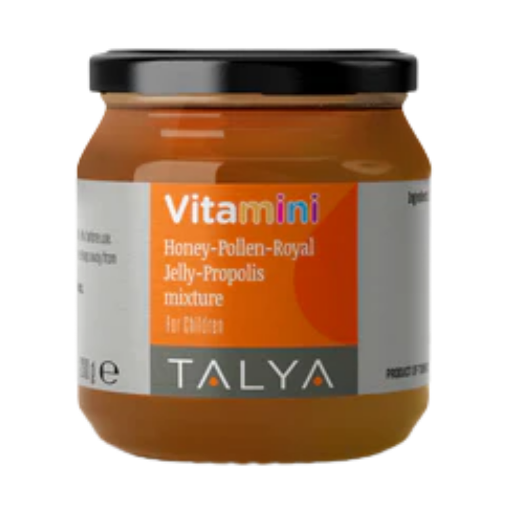 Vitamini honey pollen royal jelly propolis mixture specially prepared for children over 1 year age. It protects them bacterial and viral infections naturally.