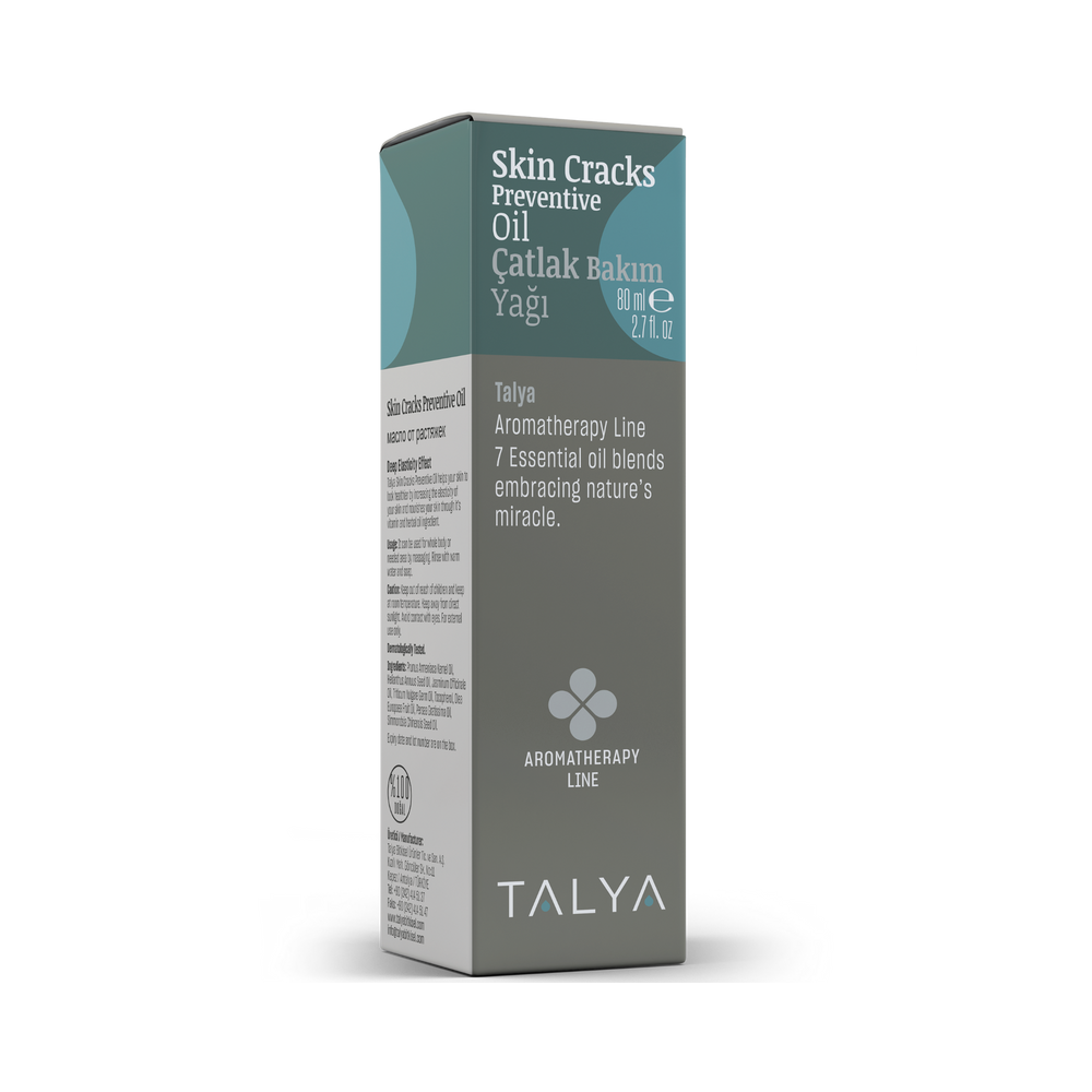 Skin cracks preventive oil has special combination of apricot seed oil, sunflower oil, jasmine oil, wheat germ oil, olive oil, avocado oil, jojoba oil and vitamin E. This perfectly blended oil helps nourishing skin during pregnancy and postpartum. Promotes skin elasticity, eases itchy sensation caused by skin dehydration and prevents skin cracks.