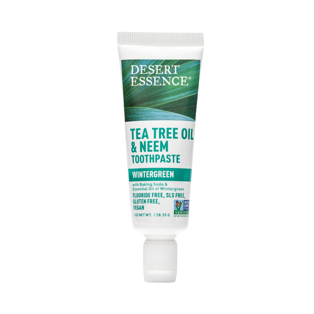 Fluoride-free toothpaste formulated with Ayurvedic Neem and Eco-Harvest®️ Tea Tree Oil. Provides botanical care for teeth and gums and freshens breath with the minty fresh taste of Wintergreen.
