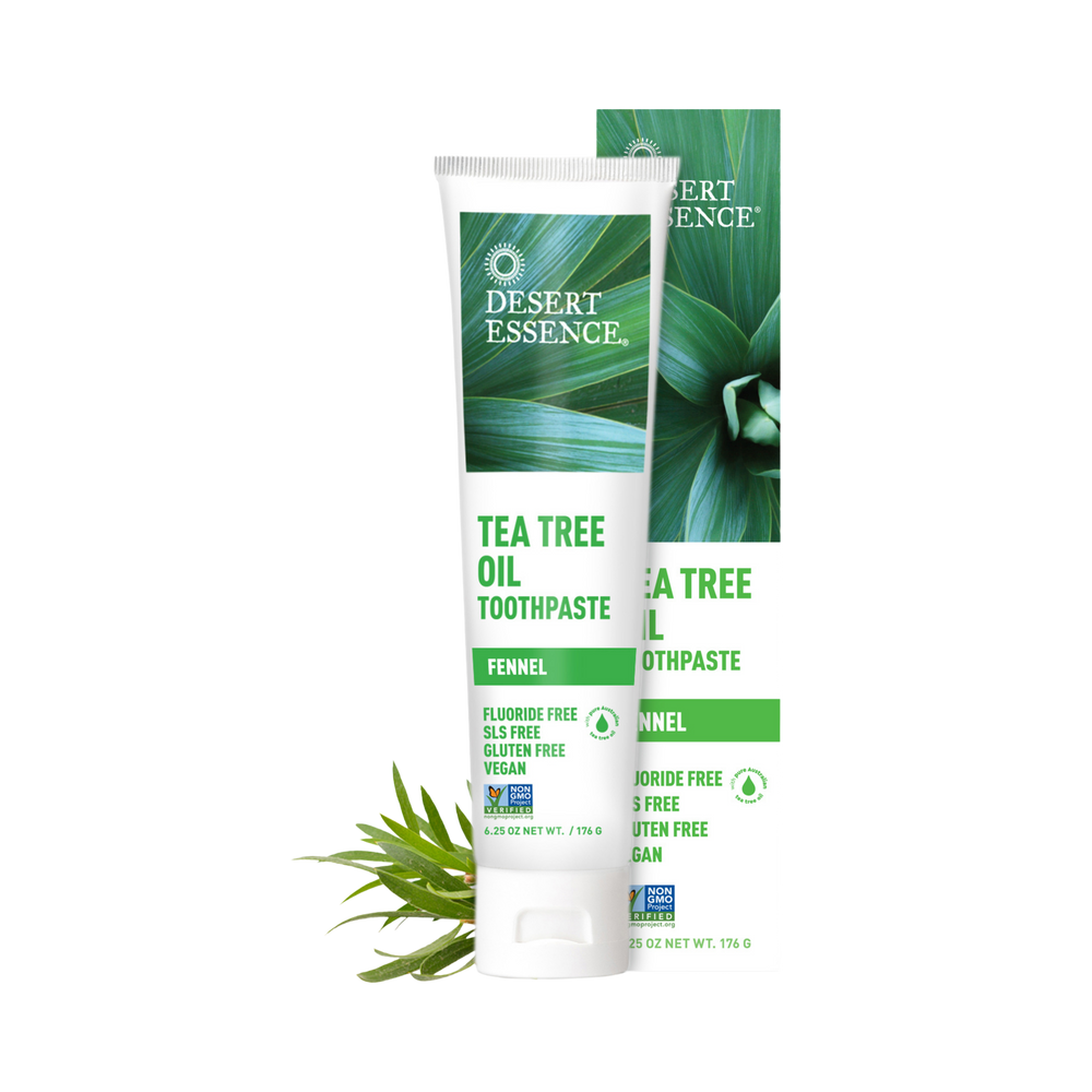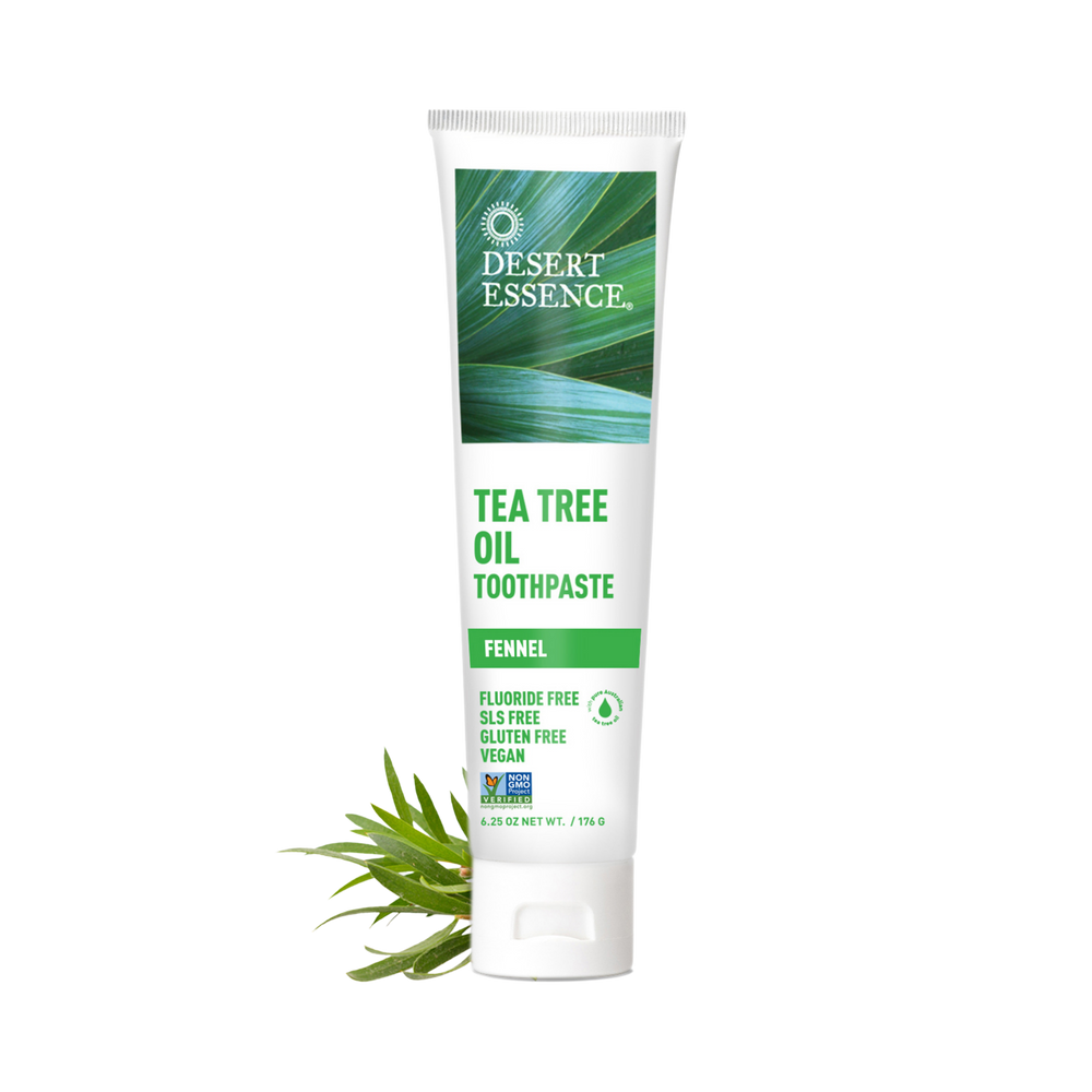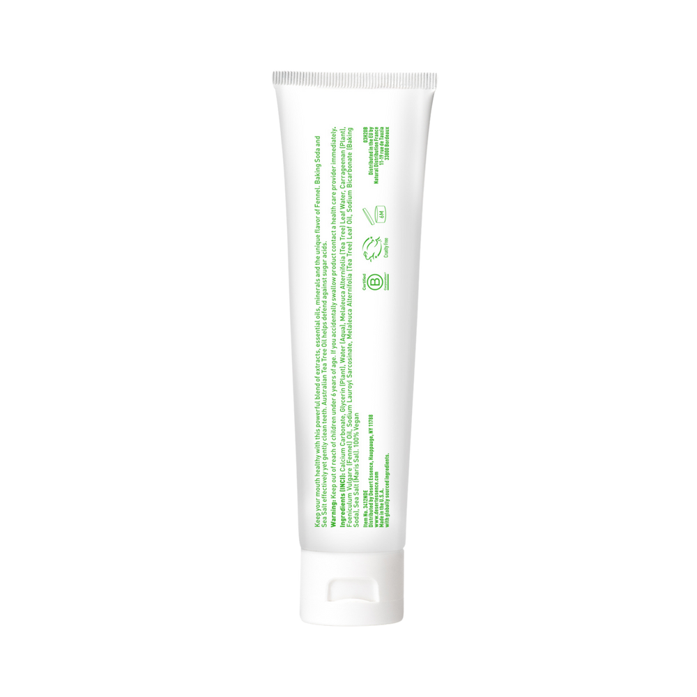 Fluoride-free toothpaste formulated with pure Australian Tea Tree Oil, soothing Fennel Oil and Baking Soda. Helps keep teeth and gums healthy and clean, while freshening breath with flavorful taste of Fennel.