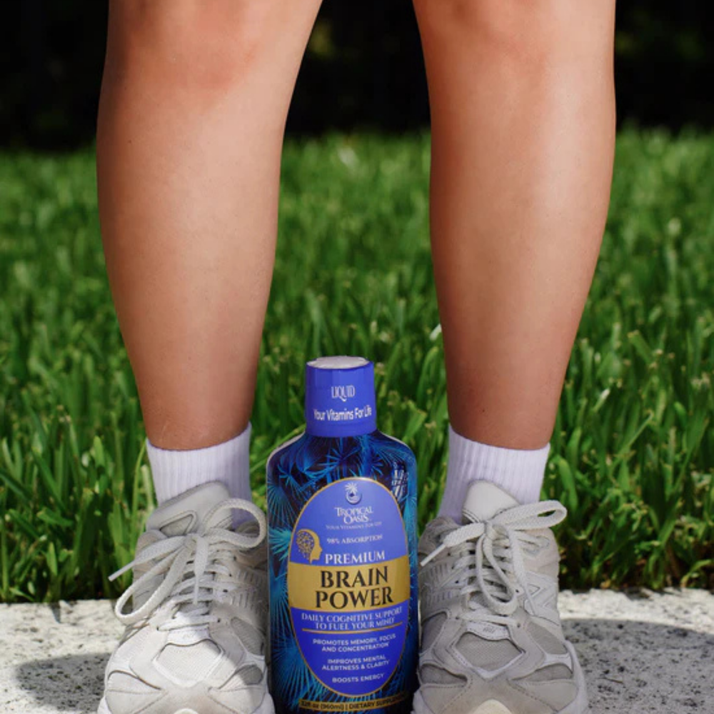 Description Tropical Oasis - Brain Power Liquid Nootropic Supplement - Promotes Mental Clarity, Focus, and Memory Retention Unflavored, 32 Servings