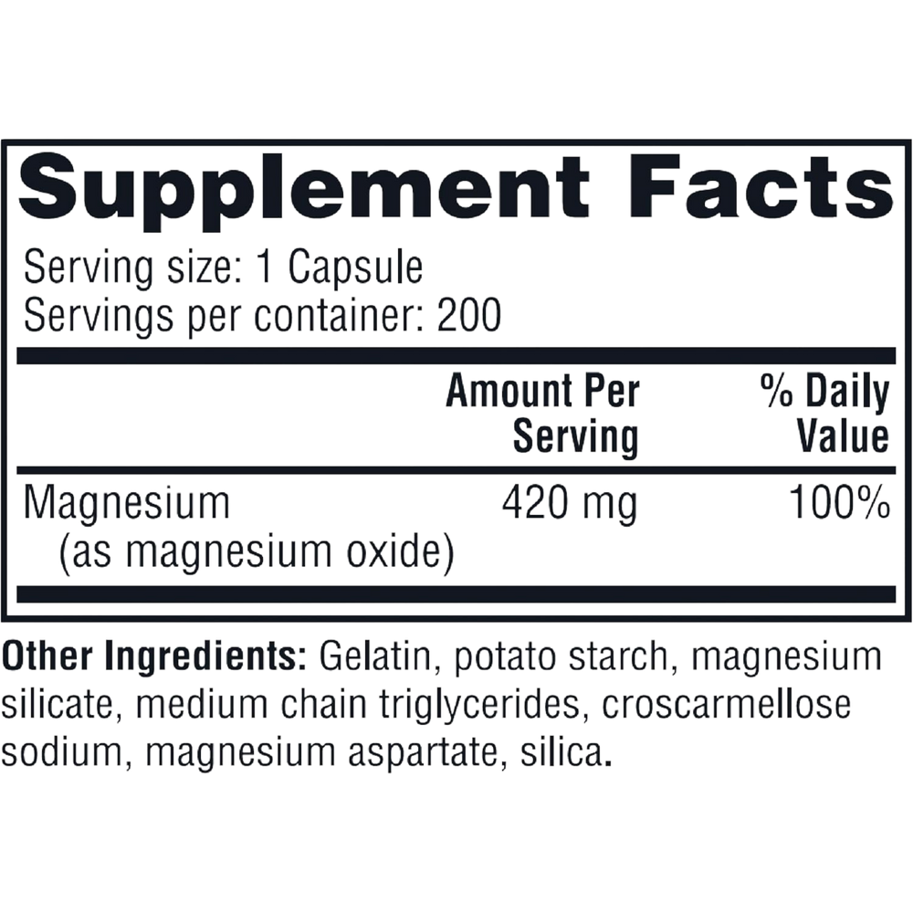 | Magnesium (as magnesium oxide) | 420 mg | 100% |