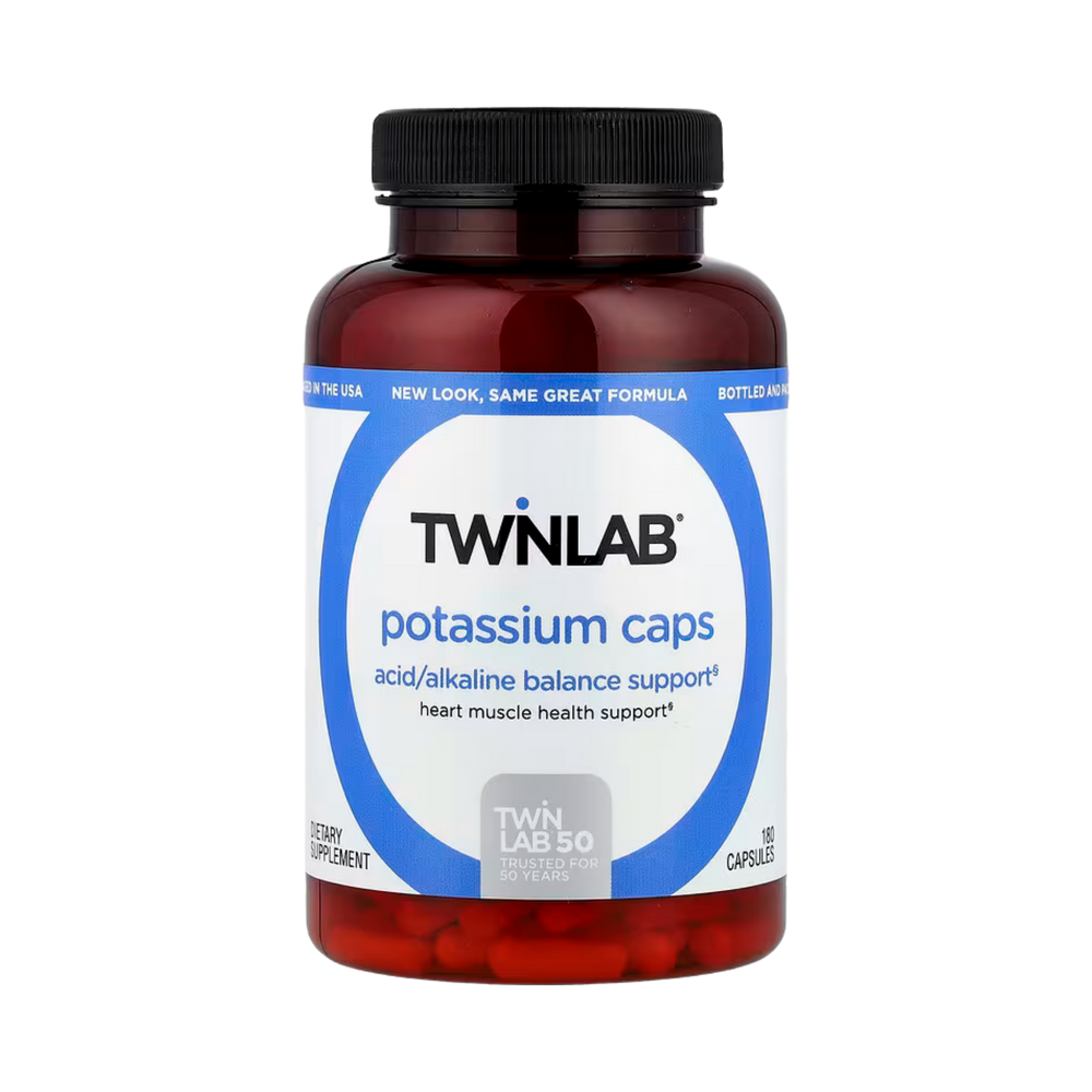 Twinlab® Potassium Caps provide 99 mg of potassium from potassium citrate and potassium aspartate. An electrolyte, potassium supports the proper function of all cells, organs, and tissues in the body. It contributes to healthy heart activity as well as skeletal health and smooth muscle contraction, making it crucial for normal muscular and digestive function.