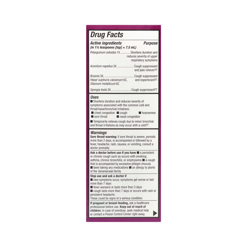 For best results, use at first sign of symptoms. Continue to use for an additional 48 hours after symptoms cease. Use only with enclosed dosage cup.Adults & children 12 years of age and older: Take 1 1/2 teaspoons (tsp) (7.5 mL) three times daily. Children 6-11 years of age: Take 1 teaspoon (5mL) two times daily. Children under 6 years of age: Consult a physician.