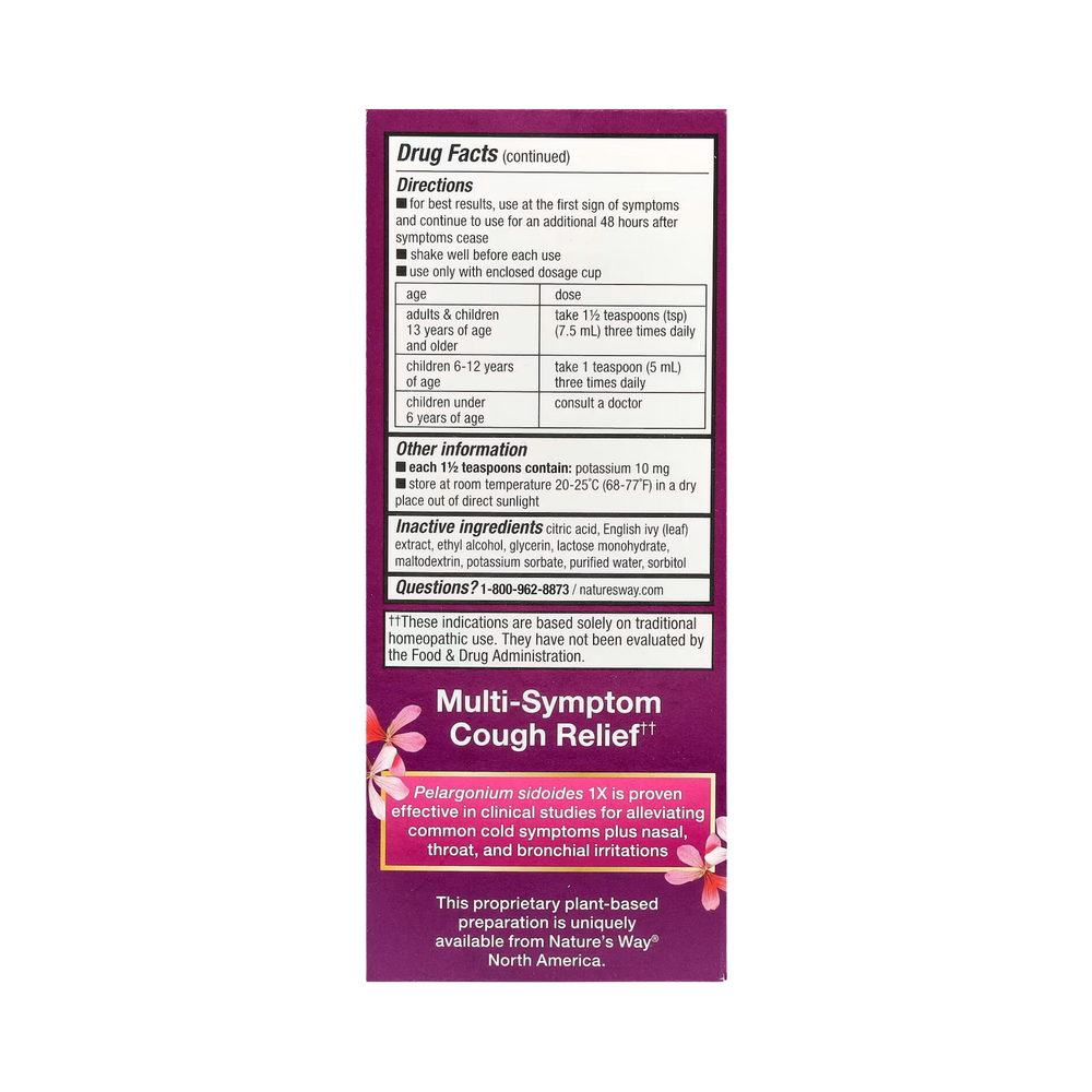 This supremely powerful formula is used to treat cough, chest congestion, sore throat, cough associated with bronchial and throat irritations. Nature's Way, Umcka Cough Syrup is the best possible way to get relief from these symptoms associated with cough and cold.