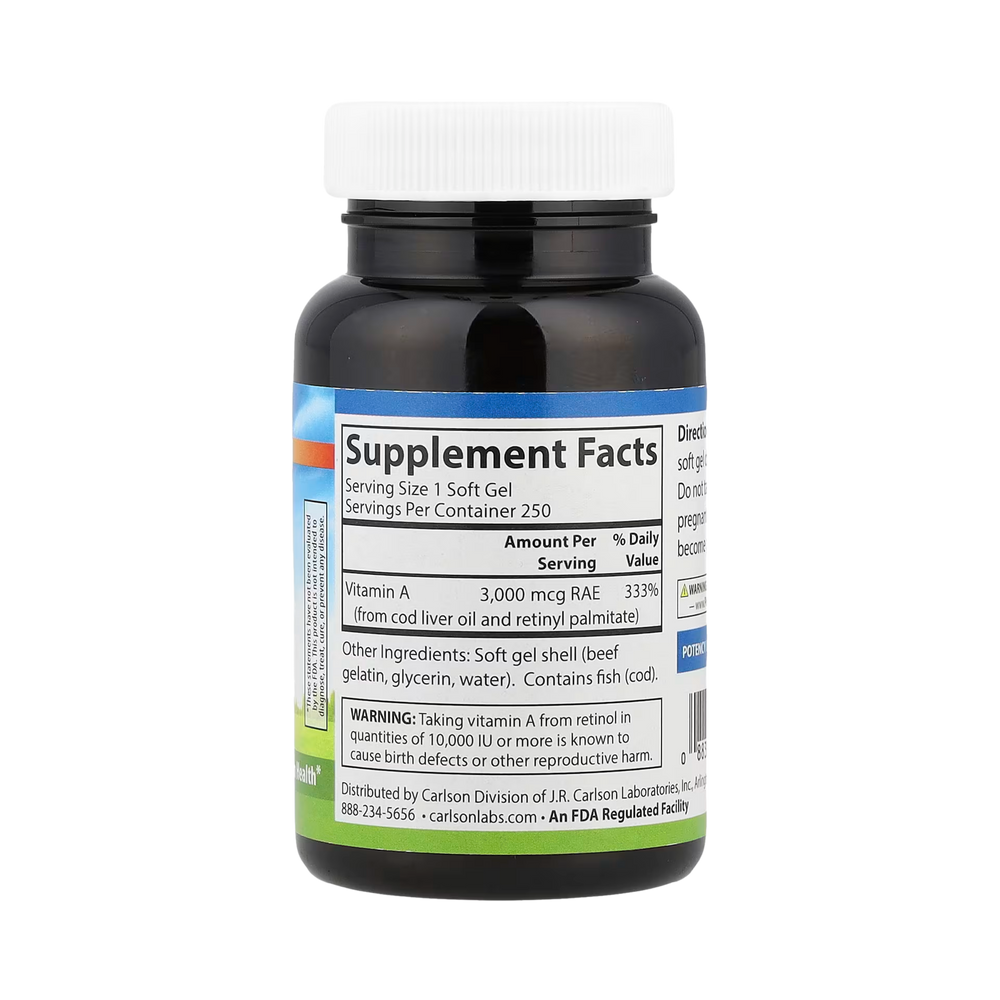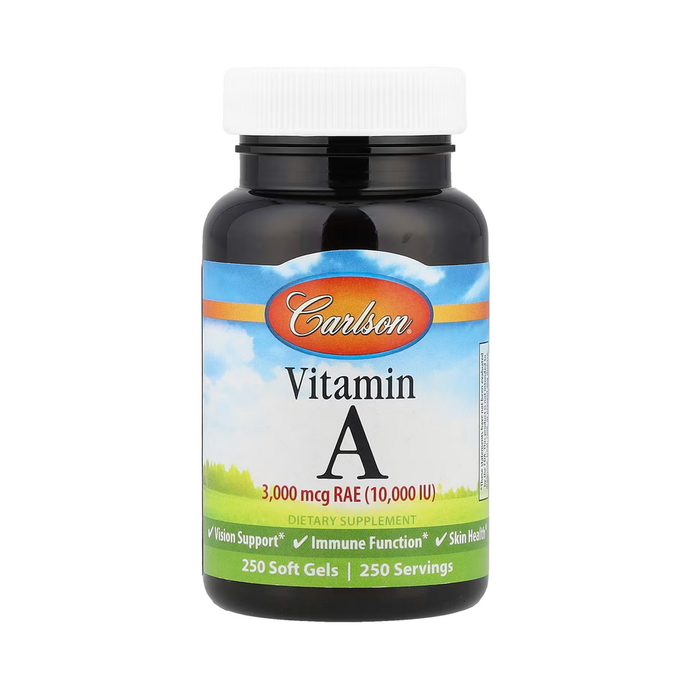 Vitamin A 3,000 mcg RAE (10,000 IU) is important for healthy vision. It plays an important role in helping the eyes adapt to light changes. Carlson Vitamin A also promotes skin, bone, and immune system health.