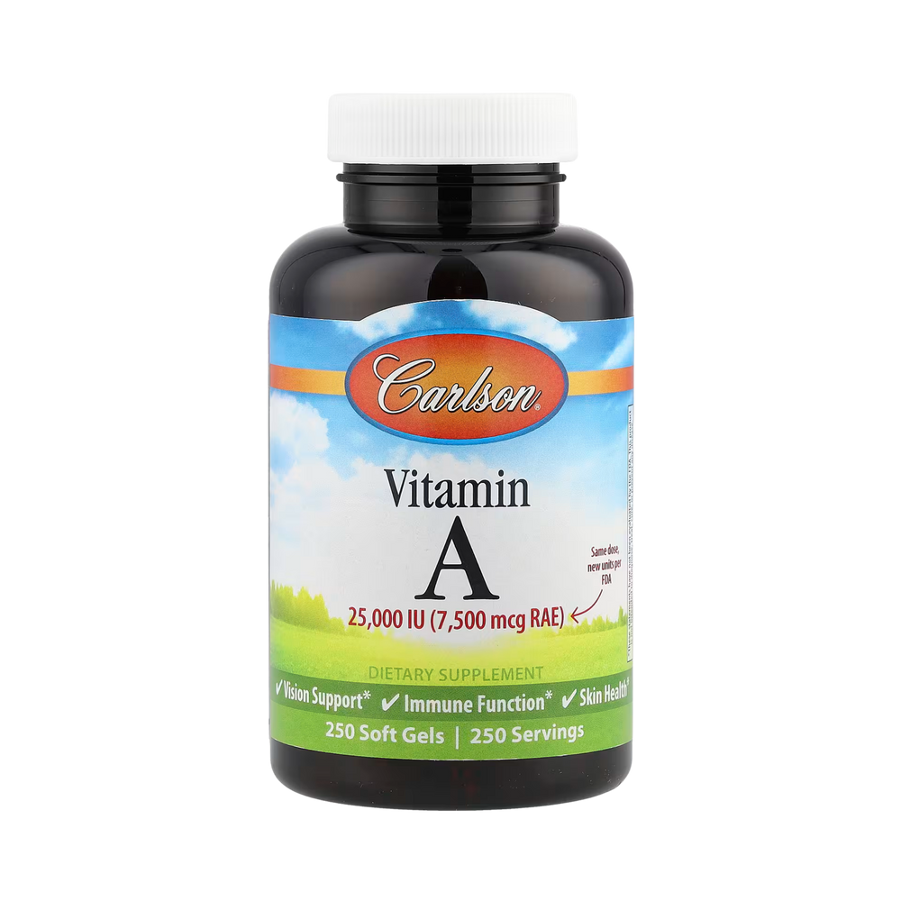 Vitamin A 25,000 IU (7,500 mcg RAE) is important for healthy vision. It plays an important role in helping the eyes adapt to light changes. Vitamin A also promotes skin, bone, and immune system health.