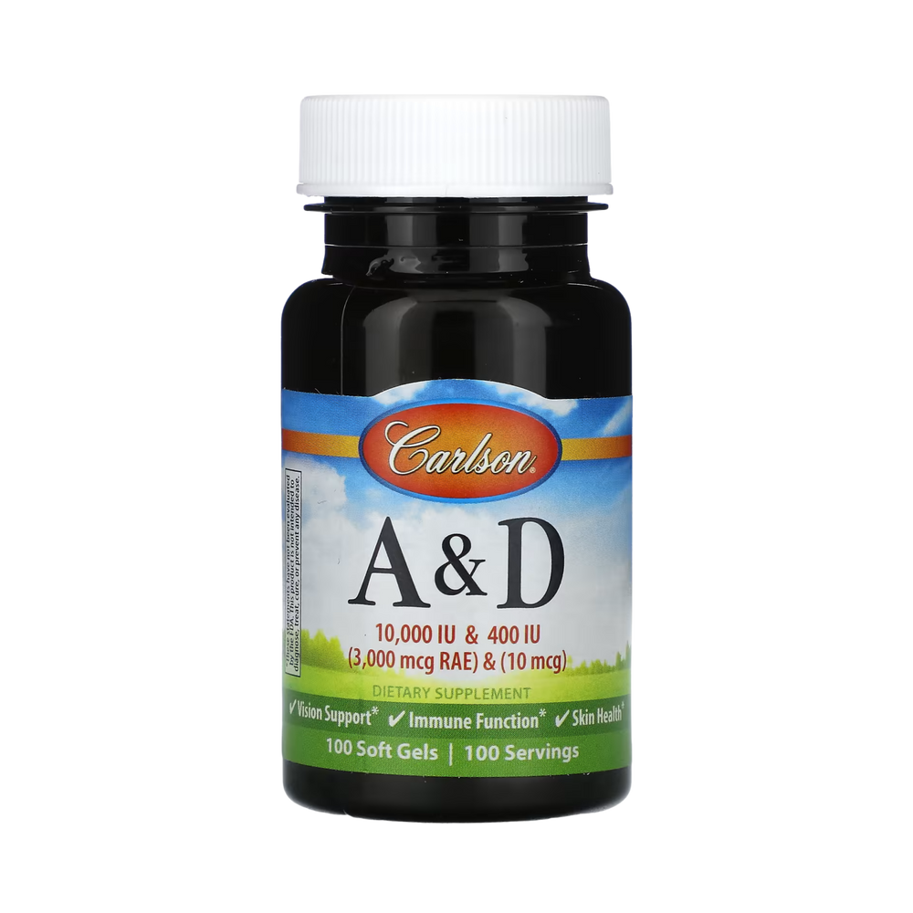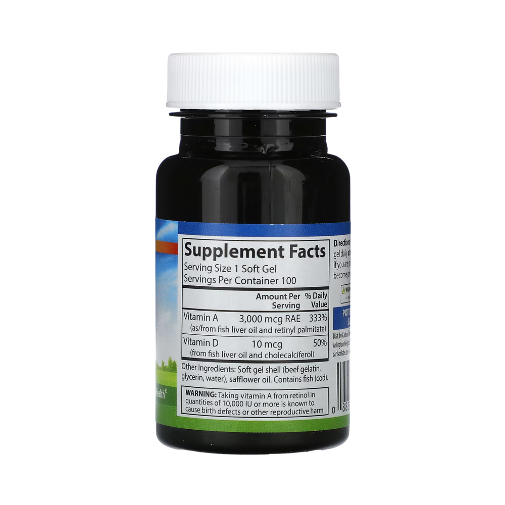 Vitamin A & D provides 3,000 mcg RAE (10,000 IU) of vitamin A from palmitate and fish liver oil and 10 mcg (400 IU) of vitamin D3 from fish liver oil to support healthy vision and immune system function.