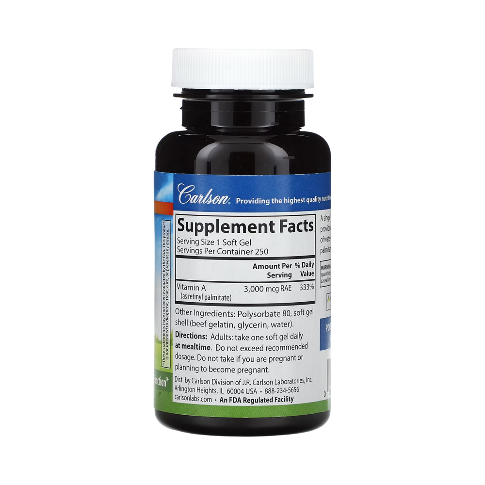 Carlson, Vitamin A, 3,000 Mcg RAE (10,000 IU), 250 Soft Gels