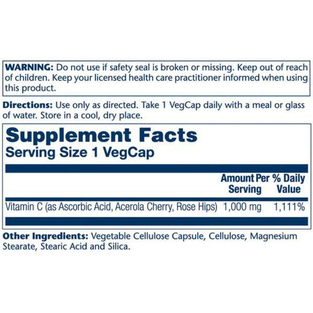 Solaray, Vitamin C With Rose Hips & Acerola, 1,000 Mg, 100 Capsules