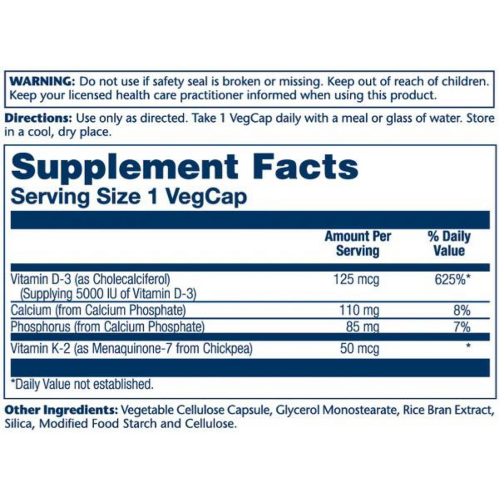 This powerful ingredient is capable of supporting healthy bones and teeth, healthy cardiovascular and immune system function, and healthy arteries. Solaray®, Vitamin D3 + K2 capsules provides the power of the sunshine vitamin‚ without artificial colors, flavors, or preservatives.