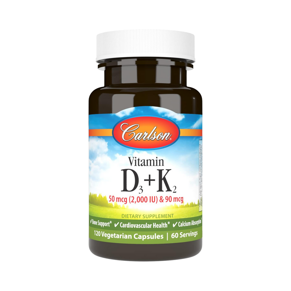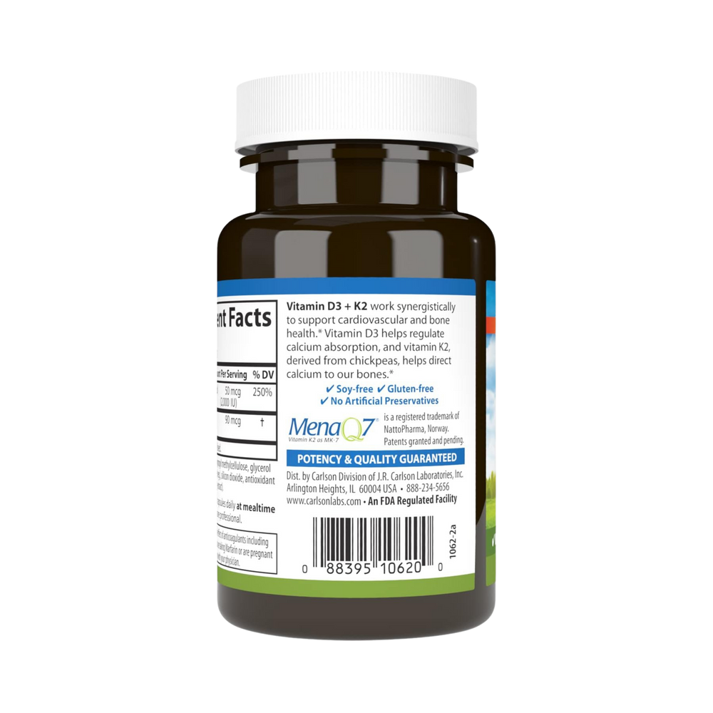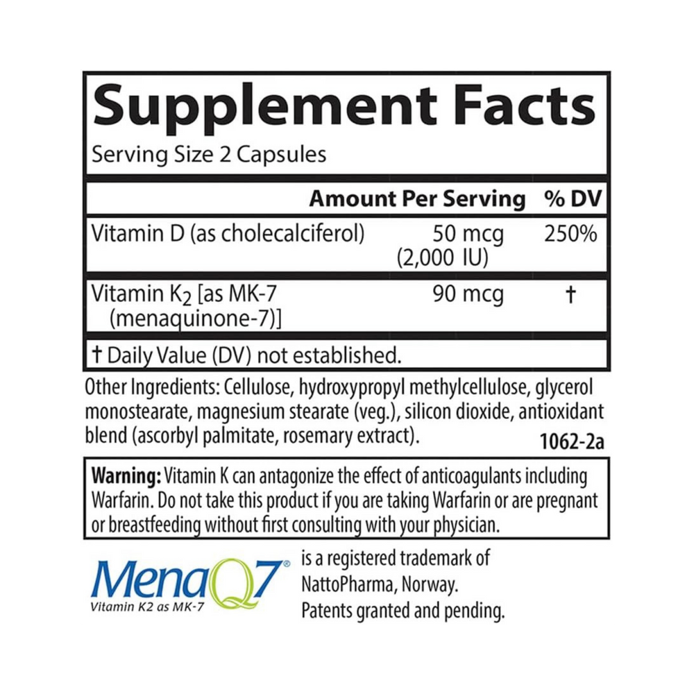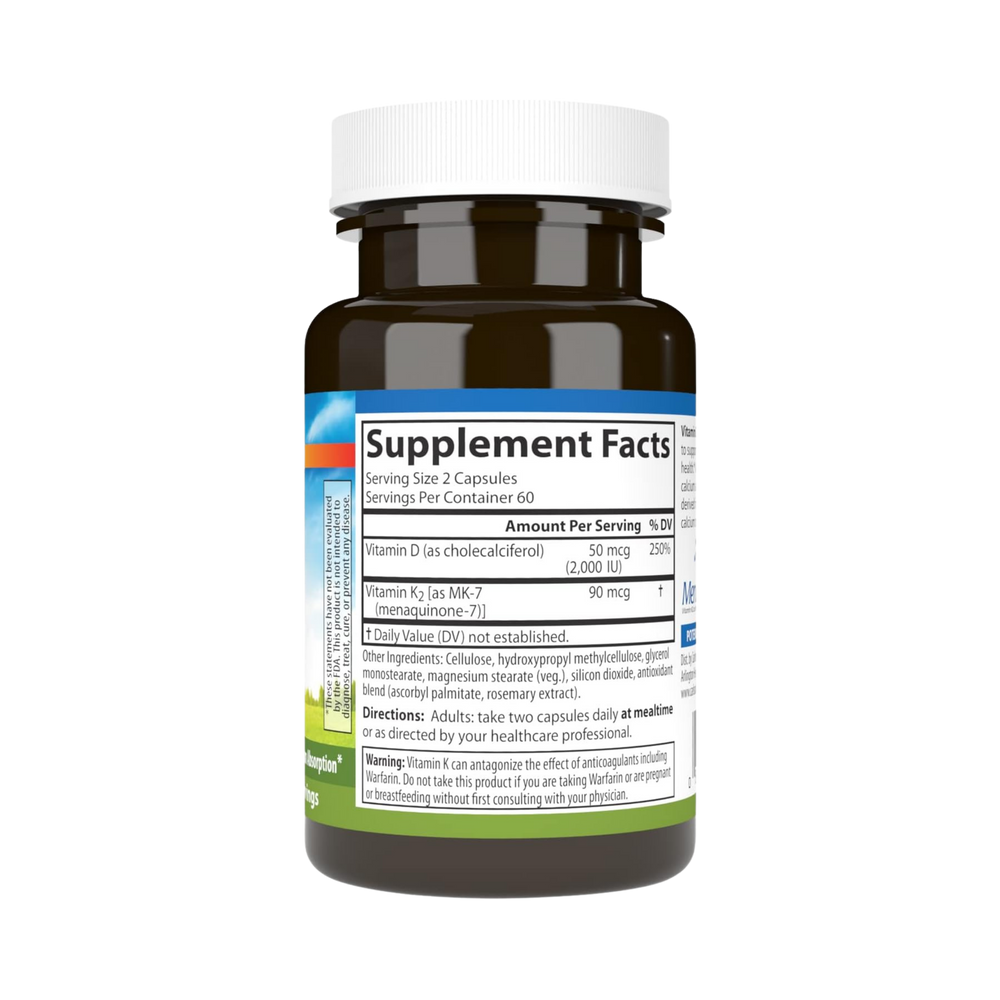 Vitamin D3 + K2 work synergistically to support cardiovascular and bone health. Vitamin D3 helps regulate calcium absorption, and vitamin K2, derived from chickpeas, helps direct calcium to our bones.