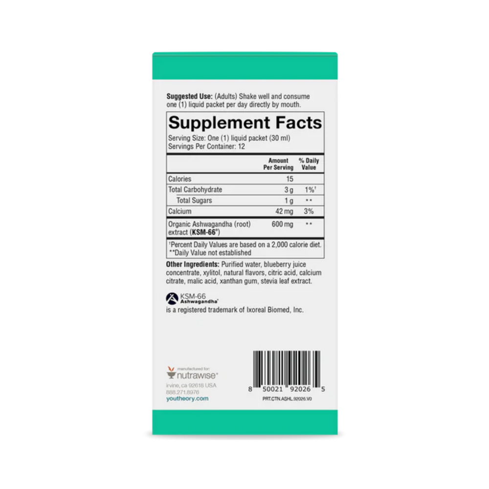 Youtheory, Ashwagandha Liquid Blueberry, 12 Oz