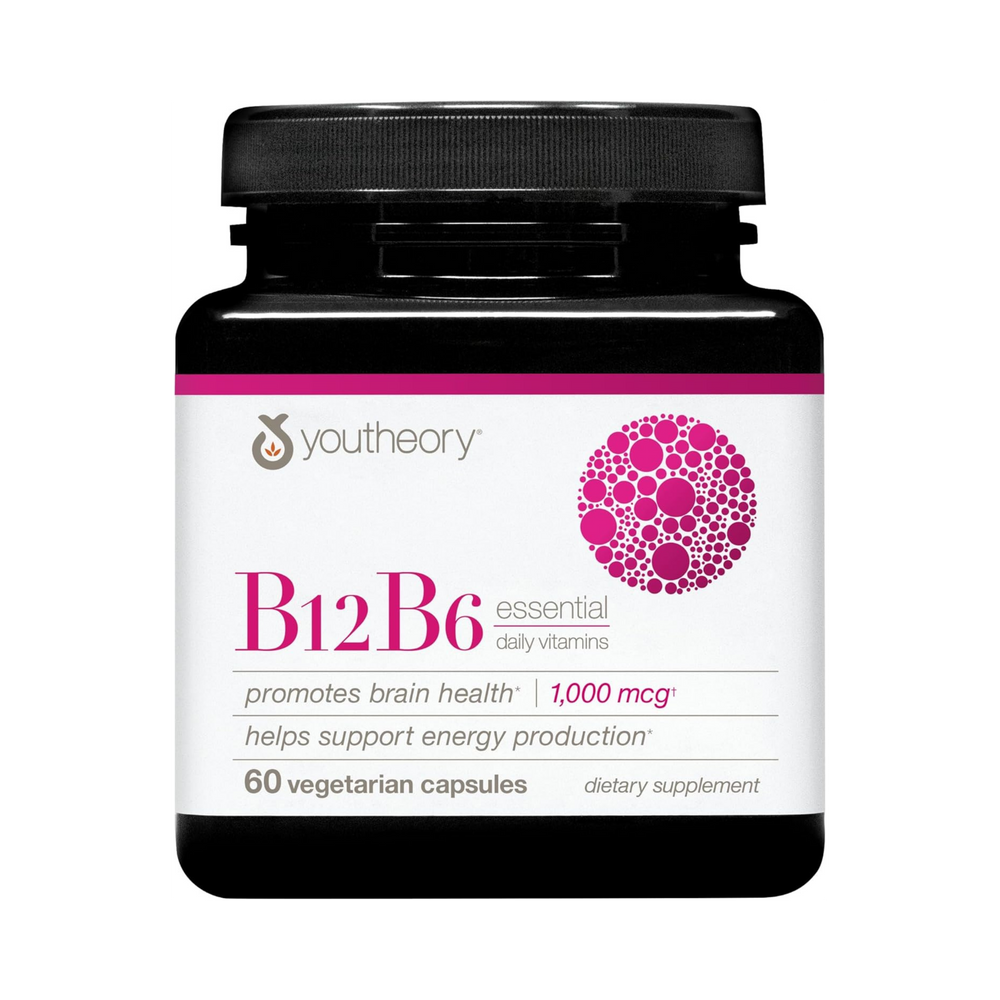 Youtheory Vitamin B12 B6, Daily Energy and Brain Support Supplement, Vegetarian Capsules, 60 ct