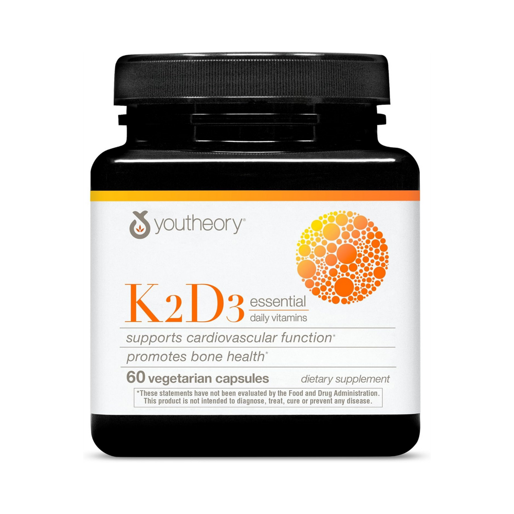 Youtheory K2 and D3 Daily Vitamin Supplement for Calcium Absorption, Bone Strength and Cardiovascular Support, 60 Vegetarian Capsules