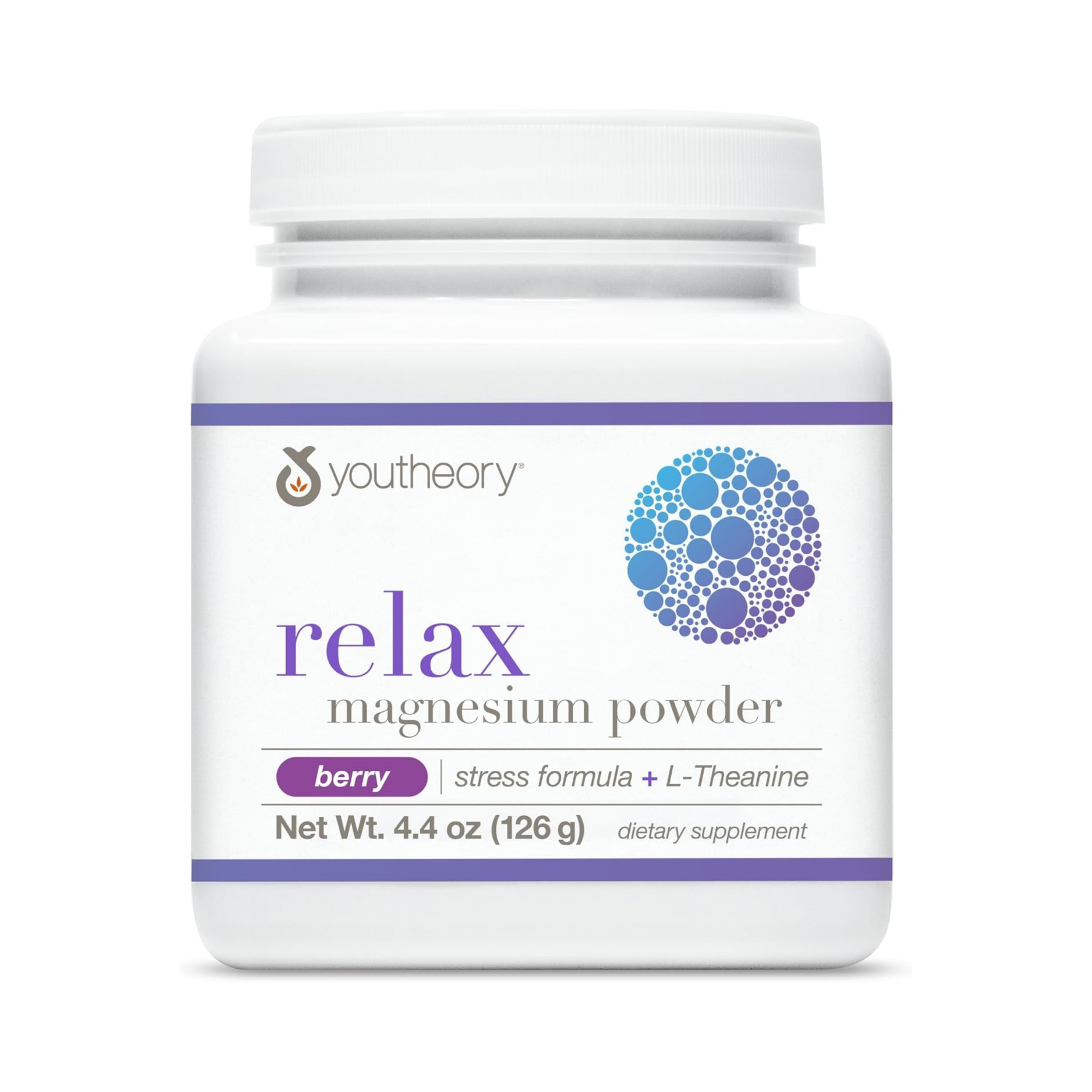 Youtheory Relax Magnesium Powder 300 mg, with GABA & L-theanine, Berry Flavor, 4.4 Ounce