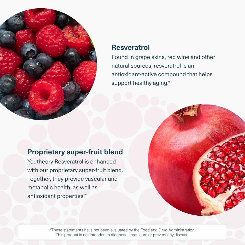 Youtheory Resveratrol Advanced Antioxidant Formula - Premium Antioxidant Supplement with Super-Fruit Blend - Contains ResVida - Dairy, Soy & Gluten Free - 290 Tablets