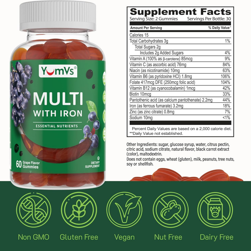 YumVs, Multi with Iron, Grape Flavor, 60 Gummies