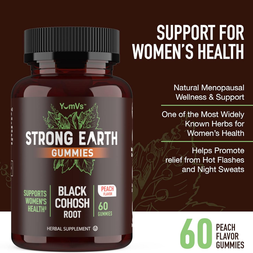 YumVs, Strong Earth Gummies, Black Cohosh Root, Peach, 60 Gummies
