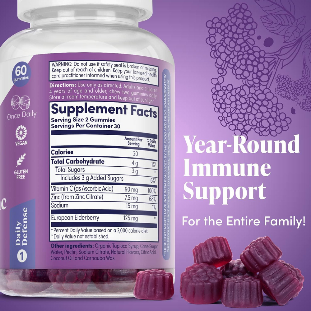 Zand, Immunity, Elderberry Zinc with Vitamin C, 60 Gummies