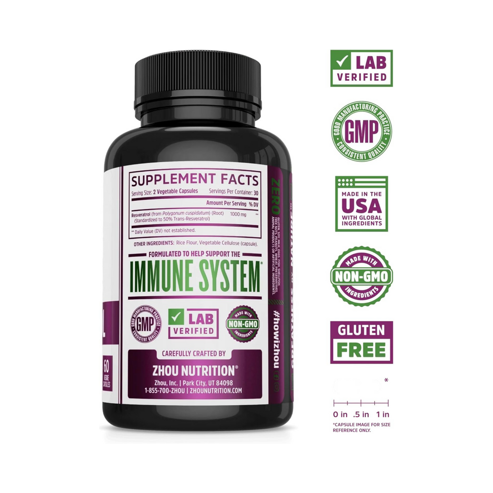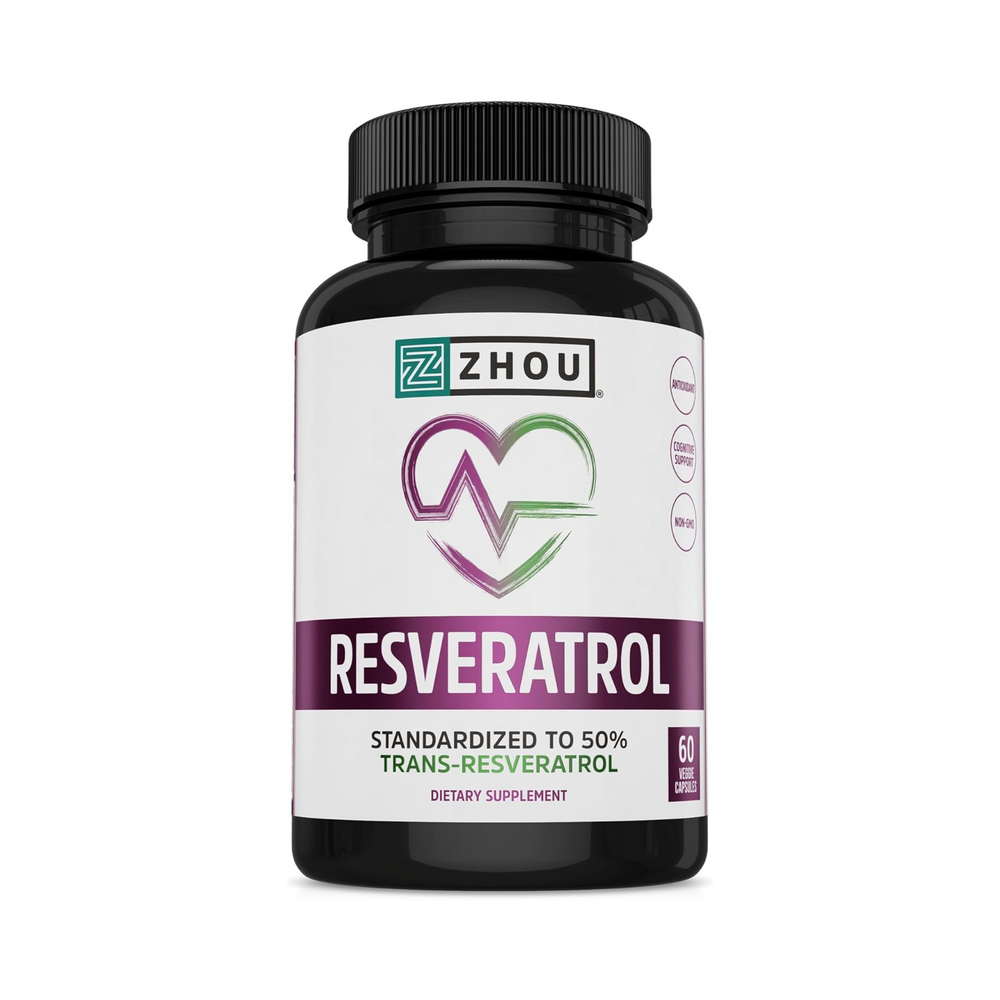 Resveratrol (standardized to 50% Trans-Reserveratrol) (from polygonium cuspidatum) (root), Rice Flour, Vegetable Cellulose (capsule), and Silica